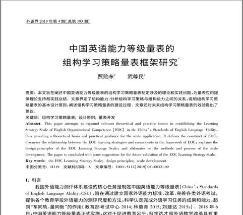 台湾A片 贾贻东副教授作为第一作者的论文《中国英语能力等级量表的组构学习策略量表框架研究》于2019年8月正式发表在《外语界》上(第4期,第32-40页)。该期刊是中文外国语类核心期刊和中文社会科学引文索引(CSSCI)》来源期刊,属我校A2类期刊。