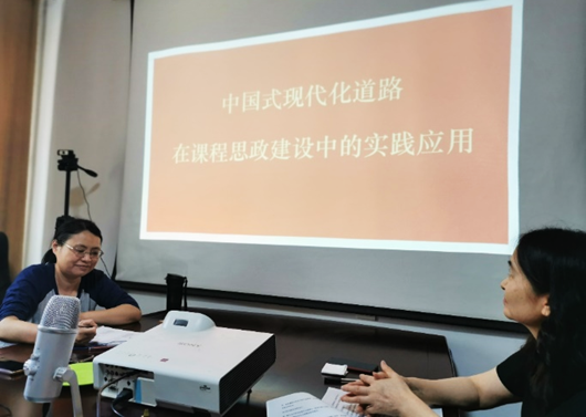 教研活动中,老师们共同学习党的“二十大”精神,深入探讨中国式现代化道路在英语类课程思政建设中的实践应用。解玲教授通过自己对中国式现代化的理解做了相关教学案例分享,为老师们课程思政教学设计做了很好的示范作用。同时,老师们深刻领会了中国式现代化的内涵,认识到中国式现代化是人口规模巨大的现代化,是全体人民共同富裕的现代化,是物质文明和精神文明协调的现代化,是人与自然和谐共生的现代化,是走和平发展道路的现代化。