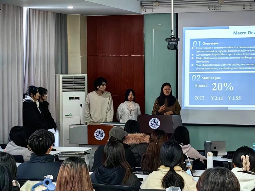 报告会上,商务英语专业学生围绕跨境电商行业的各个维度,进行了全面而深入的报告和分享,报告内容丰富,涵盖了电商行业的市场趋势、技术革新、电商语言、经济影响及未来发展趋势等多个方面,充分展示了学生们的研究能力和创新思维。