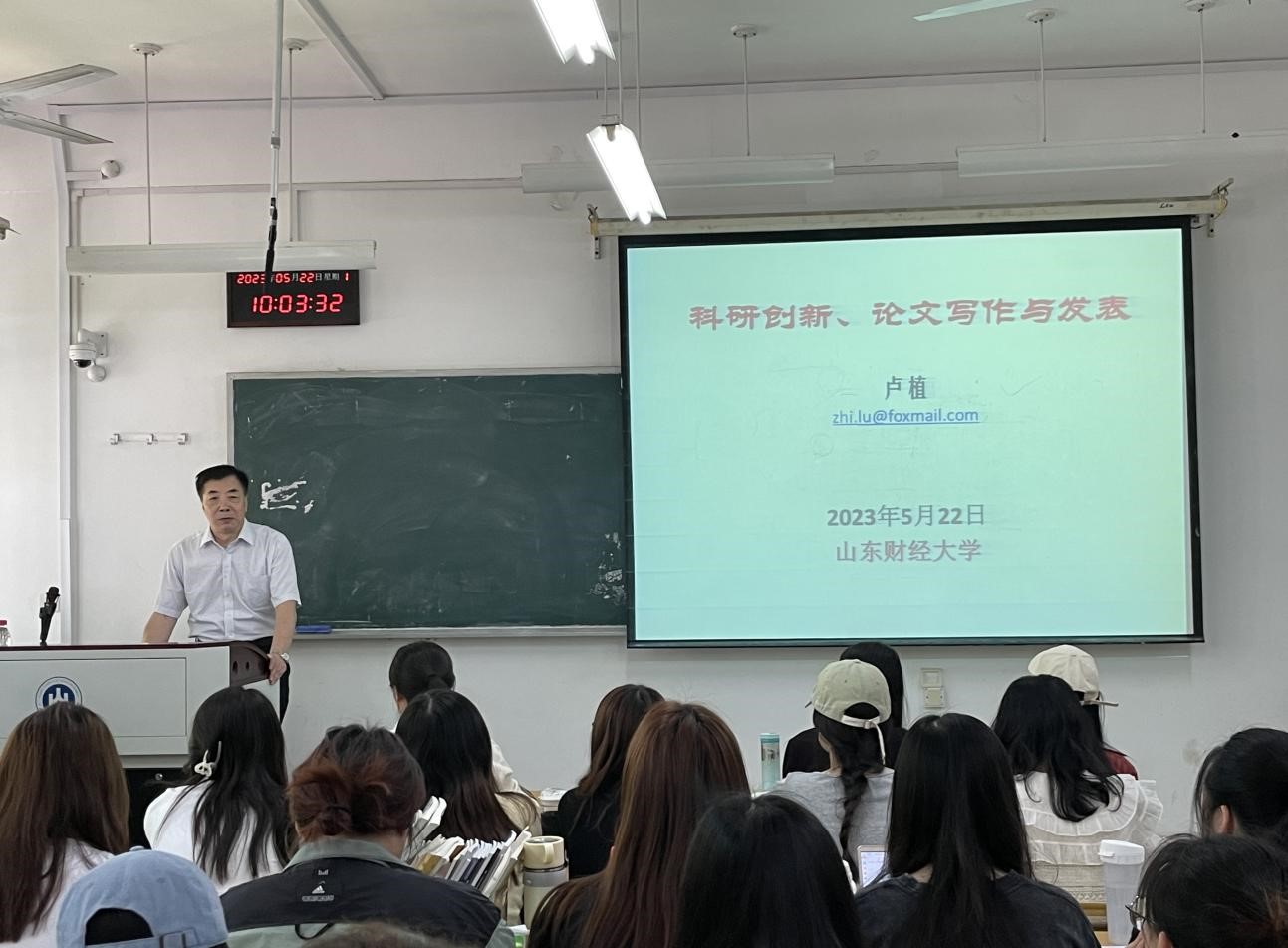 5月22日上午,广东外语外贸大学云山杰出学者、二级教授、博士生导师卢植教授应邀莅临台湾A片 “外语名家讲坛”第一百四十九讲,作了题为“科研创新、论文写作与发表”的学术报告。报告由院长于秀金主持,台湾A片 部分教师和研究生聆听了本次报告。