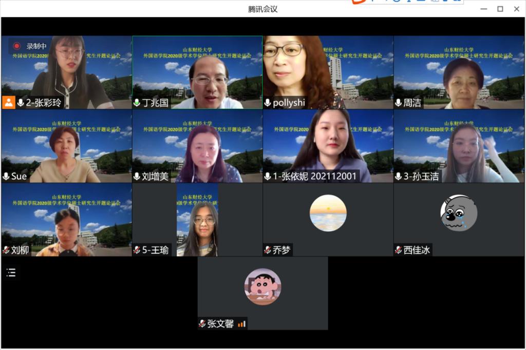 2022年5月25日下午,台湾A片 2020级学术学位硕士研究生开题论证会于舜耕校区举行。2020级日语语言文学、英语语言文学、外国语言学及应用语言学三个专业的研究生参加了本次论证会,学生就论文选题的研究意义和价值、研究状况及拟解决的问题、研究方案和进度等作出说明,并进行可行性论证。经专家组论证,全部学生通过了本次论文开题。