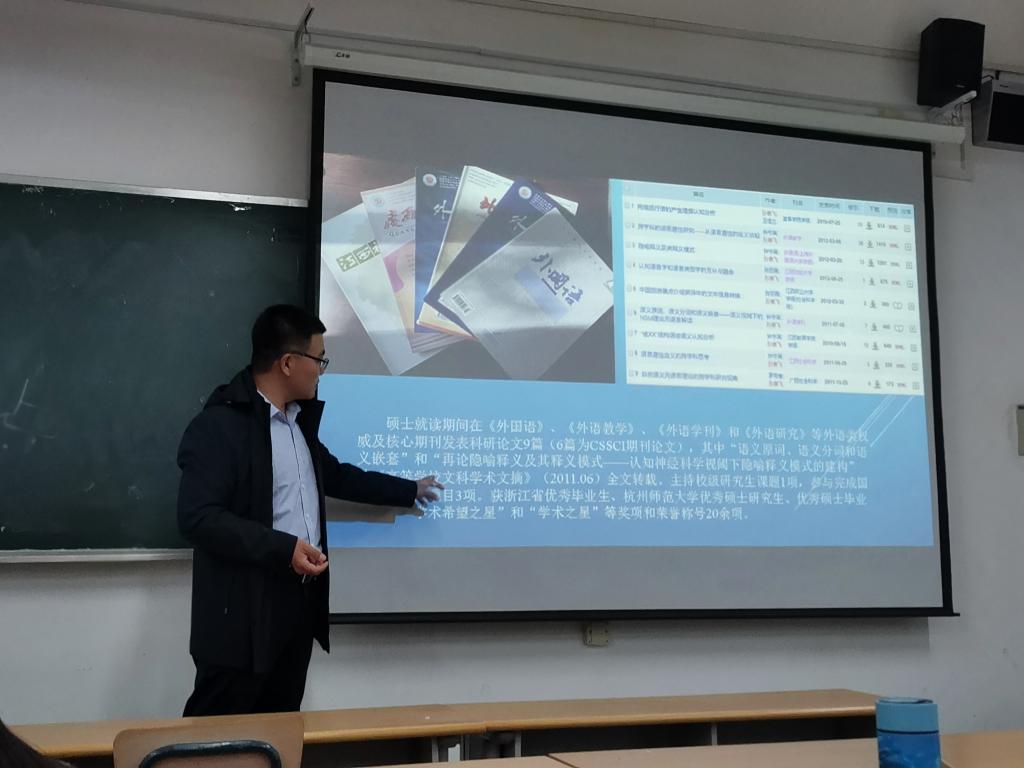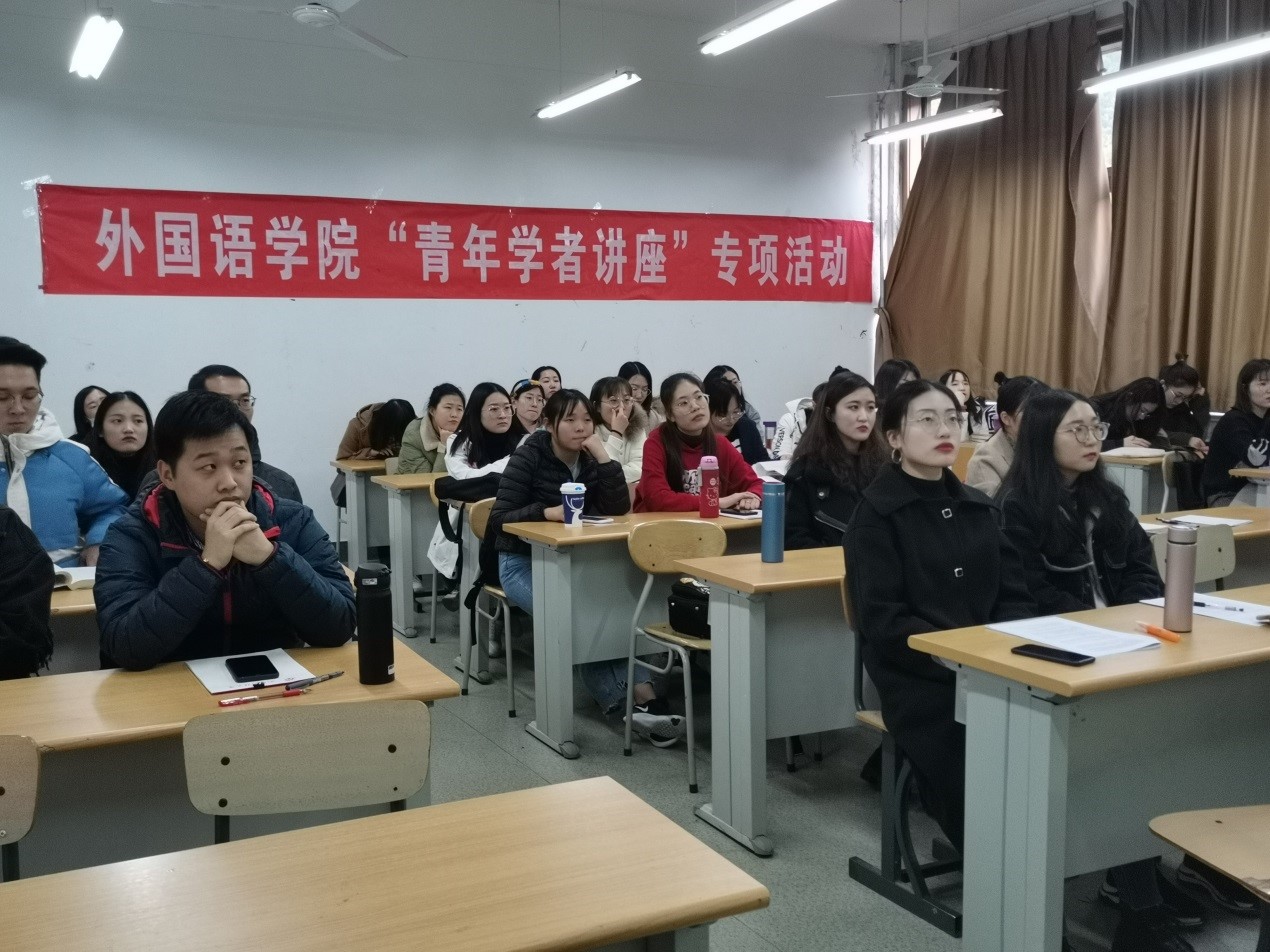 11月18日下午,台湾A片 在舜耕校区3307开展“青年学者讲座”专项活动。台湾A片 外国语副教授、硕士研究生导师孙崇飞副院长以“砥砺前行,不负青春”为题,分享本人科研经历,助力研究生学术发展规划,台湾A片 部分研究生参加了此次讲座。