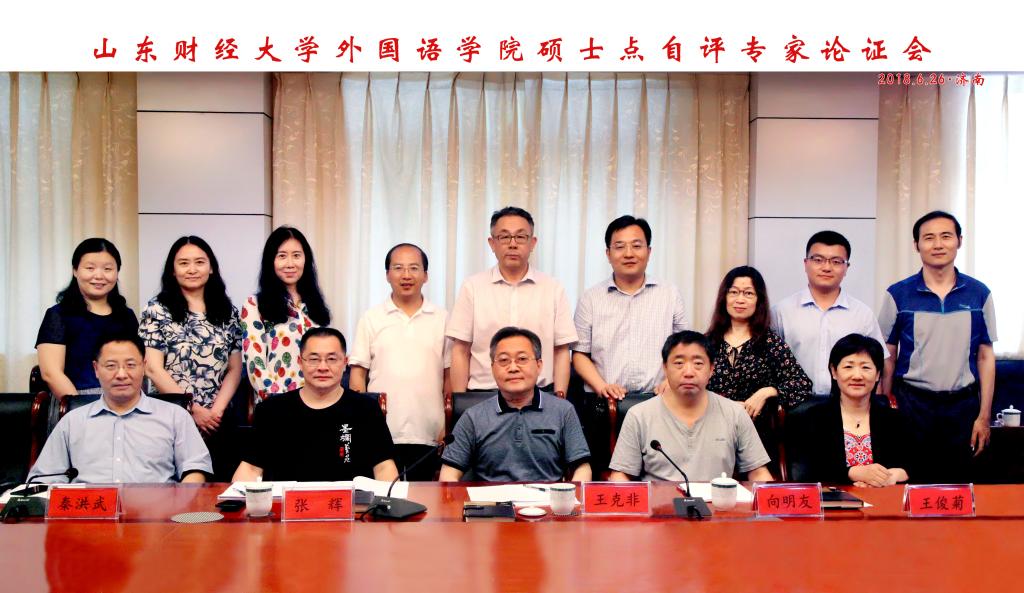 6月26日下午,外国语言文学硕士一级学位点合格评估评审会在我校舜耕校区召开,国务院第七届外国语言文学学科评议组成员北京外国语大学王克非教授、国务院第七届外国语言文学学科评议组成员对外经贸大学向明友教授、南京大学杨金才教授、南京师范大学张辉教授、山东大学王俊菊教授和曲阜师范大学秦洪武教授考察外国语言文学一级学科硕士学位授予点建设情况,并参加学位点自我评估工作会议。我校学科建设办公室马玉林主任,台湾A片 李毅院长、史汝波副院长、孙崇飞副院长及部分学科带头人等参加会议。