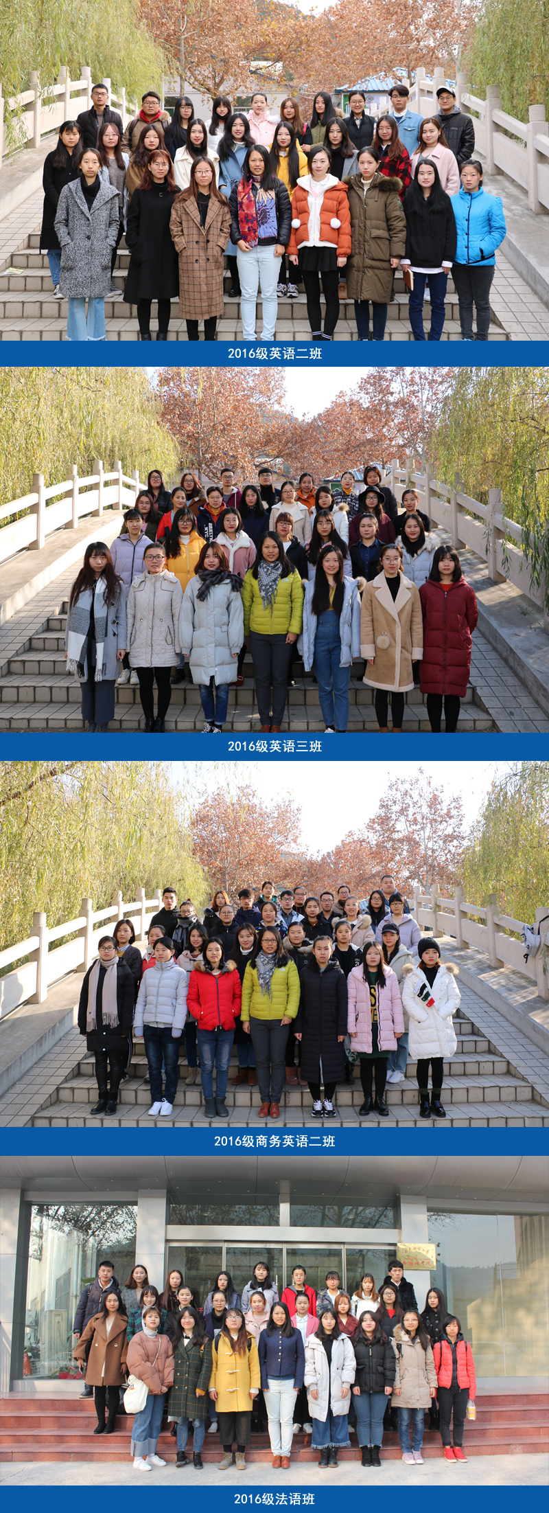 台湾A片 2016-2017学年度三优班级评选结果公布,在我校仅有的10个获奖名额中,半数荣誉花落外院,共有5个班级获得“三优班级”荣誉称号,分别是由赵雅莉老师负责的2014级英语三班以及齐文茜老师负责的2016级法语班、2016级商务英语二班、2016级英语二班、2016级英语三班。