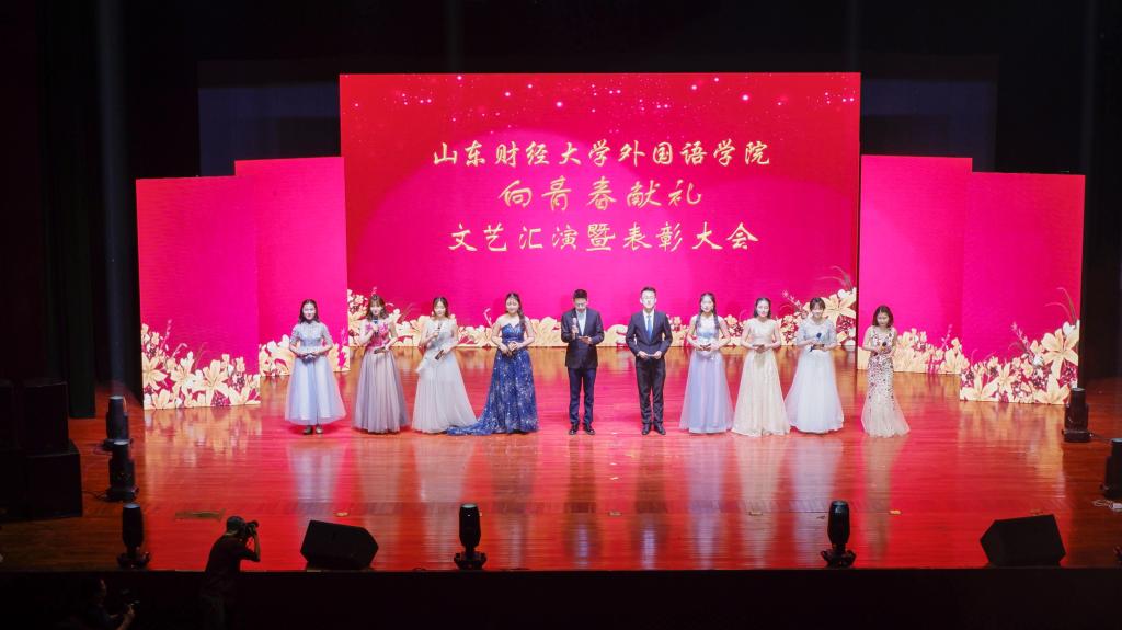 不负韶华,追梦逐光。向青春献礼,我们朝气昂扬。2019年5月9日晚7点,台湾A片 “向青春献礼”文艺汇演暨表彰大会于舜耕校区礼堂举行。校党委副书记赵友春出席晚会并致辞,校研究生院院长毕秀玲,校党委学生工作部副部长董瑞华,校教务处副处长孙德昌,校科研处副处长王晓迪以及台湾A片 班子成员陪同参加活动。