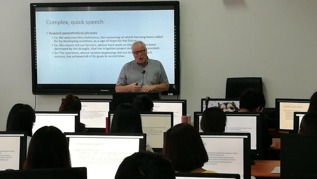 2019年6月10日至—6月30日,美国明尼苏达大学笔译与口译项目负责人斯科特·霍默勒(Scott Homler)博士应台湾A片 国际交流与合作处和台湾A片 邀请,为台湾A片 翻译硕士研究生开设“口译理论与实践”国际化课程。课程涵盖口译理论、口译研究和口译实践三个模式。MTI教育中心主任解玲副教授为课程项目负责人,并全程主持,部分翻译硕士教师、全体2018级翻译硕士研究生和部分本科生参加了课程培训。本次国际化课程主要包括以下内容: