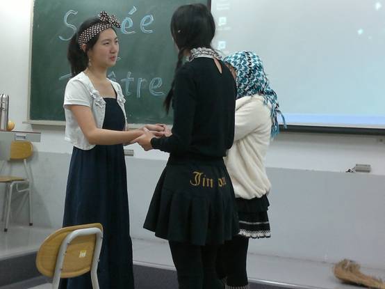 通讯员(倪一丹)经过精心筹备,法语话剧表演大会于11月25号下午在舜耕校区1107教室举行,参会的演员为我校2009级法语班的全体同学,另外法语教师王淑华、张兆龙以及法语外教Raymond作为嘉宾评委参加了此次活动。