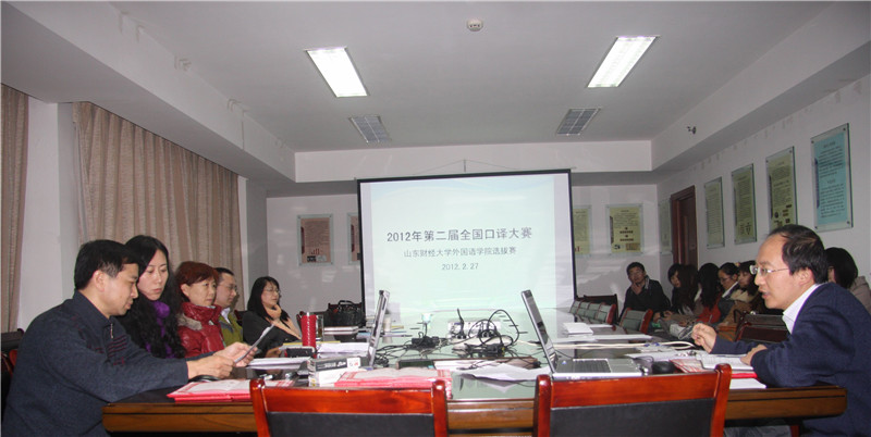 2月27日下午,台湾A片 承办的第二届全国口译大赛(英语)台湾A片 初赛在我校成功举行。第二届全国口译大赛(英语)是在团中央学校部的直接指导下,由中国翻译协会主办的高水平赛事,旨在满足我国日益扩大的对外交流需求,培养高素质翻译人才,促进翻译学科建设和翻译行业的繁荣与发展。山东赛区以各大学为单位进行初赛,选拔优秀选手参加复赛。我校英语专业的22名本科生和研究生参加了比赛。台湾A片 孙国瑾副教授、解玲副教授、王艳红副教授、王朋副教授、张明彬讲师担任嘉宾评委。