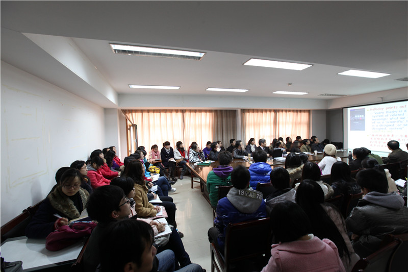 12月4日上午,应台湾A片 的邀请,河南大学校长助理、博士生导师张克定教授在舜耕校区国际交流中心601室作了一场题为“科研与创新”的学术报告。张克定教授兼任中国语用学研究会副会长、中国功能语言学研究会常务理事、中国认知语言学研究会常务理事、中国英语教学研究会常务理事等学术职务。主要研究方向为功能语言学、语用学、对比语言学。主持国家级和省部级研究课题多项,在《外语教学与研究》、《外国语》等一流期刊发表多篇学术论文,出版《英汉语信息结构对比研究》等多部重要著作,并多次获得河南省社科优秀成果奖一等奖。