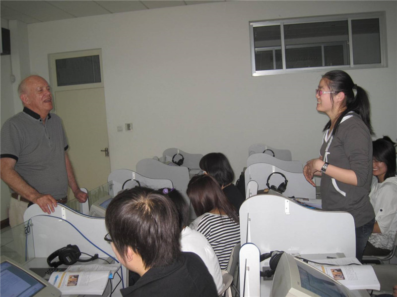 (通讯员 胡艳敏)5月3日下午,美国康州中国教育交流中心主任、原康州教育厅中美教育合作项目负责人葛丹先生在台湾A片 副院长周洁陪同下莅临实验中心语言实验室412室听课,对教师授课给予指导,并与学生展开互动。