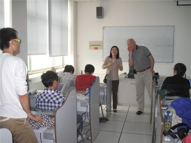 课上,应任课教师魏海燕的邀请,葛丹先生以生动、幽默的语言,回答了学生有关中美课堂教学风格、中美年轻人业余生活、地球环境保护以及对中国城市的印象等方面的提问,并就汉语言专业学生出国教授汉语的职业发展提出了宝贵意见。课后,他对魏海燕老师的大学英语听说课教学给予了高度评价,结合他自己多年与中国进行教育合作的经验,充分肯定了中国教育改革的成绩。