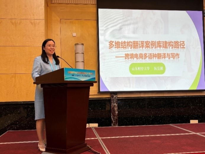 在“案例库建设与专业学位教育”分论坛中,阮岳湘以“多维结构翻译案例库构建路径:以跨境电商多语种翻译与写作为例”为题作专题发言。她结合学院在财经翻译领域的特色优势,系统阐释了如何通过跨学科资源整合、校企协同开发及数字化技术应用,构建服务于教学与行业需求的多维度案例库体系。提出跨境电商翻译案例库建设应立足“规则—实践—数据”模式,融入财经、贸易等垂直领域真实项目,强化学生解决复杂翻译问题的能力,同时为行业提供标准化参考。其观点引发与会专家热烈讨论。