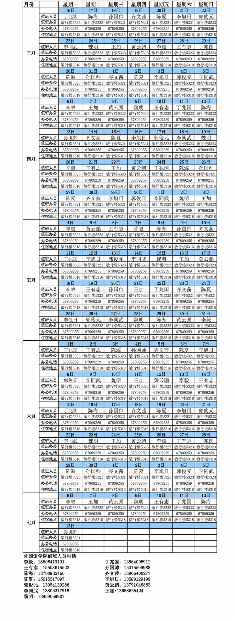 2014-2015学年第2学期台湾A片 圣井校区值班表