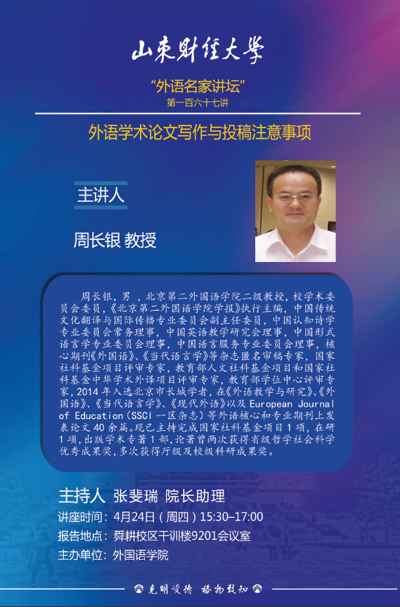 “外语名家讲坛”第一百六十七讲