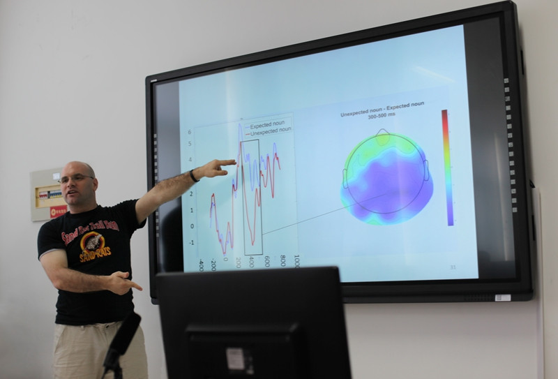 为进一步落实学校国际化战略、加强国际教育合作,提升学院课程国际化建设水平、完善课程体系,台湾A片 于5月30至6月2日期间成功举办了“语言研究与ERP技术”课程国际化项目系列讲座。课程主讲人Stephen Politzer-Ahles博士,美国堪萨斯大学副教授,牛津大学博士后,主要研究方向为认知语言学与认知脑科学,曾在Language, Cognition and Neuroscience等国际核心期刊发表论文数十篇,主持国际合作项目数项,是国际语言与脑神经认知科学研究领域具有影响力的知名学者。 该课程在国内外国语言文学研究生课程体系架构中具有开拓性和创新性,内容涵盖认知语言学与脑神经认知科学领域的国际前沿研究内容和及其研究方法,具体包括:1. EEG简介,如EEG与fMRI的区别、EEG与ERP的关系,以及ERP的特征;2. EEG的不足与解释,如ERP成分N400的特征、N400的本质,以及现有研究对N400的错误理解;3. EEG数据收集与分析,如脑电仪器基本操作、基线的定义与原理、伪迹的定义与鉴别;4. 实验结果处理标准,如基线校正、去除伪迹、平均化,以及校正伪迹等;5. R-语言介绍,如R-语言工具的优势、基本算法及应用范围等;6. 基础ERP脑电分析,如总平均、被试个体差异、共振峰的定义与鉴别、主要ERP成分;7. 高级ERP脑电分析,如排列测试、回归等。除此之外,还有实验室具体实验操作演练,包括被试准备工作(如佩戴电极帽、打电极膏等)、数据收集(行为数据收集、脑电数据收集)、数据处理(数据融合、去伪、校正等)。台湾A片 全体科学硕士生、学院语言学团队成员和相关教师全程参加听课、学习,同时课程还吸引了来自北京外国语大学、南京师范大学、南京大学、山东大学、青岛海洋大学、山东师范大学、曲阜师范大学、山东理工大学等国内10余所高校师生。大家纷纷表示,该系列讲座具有国际前瞻性,内容深入浅出,既有理论讲解、数据分析、前沿统计方法的讲授,又有具体的实验操作方法,大家获益匪浅。 课程国际化项目的开展对学院课程建设、人才培养、教学改革等多个方面均有推动与促进作用,具体体现在以下几方面:第一,项目扩大了学院在学界的影响,同时也提升了学校的知名度和影响。通过项目的开展,学院与其他高校的相关研究领域的师生进行了充分的交流,扩大了学院ERP神经认知实验室在学界的知名度与影响;第二,项目开拓了我校师生的学术视野,为学院相关领域的研究储备了后备力量。学院师生对国际前沿研究领域有了更深的认识,讲座期间能够就自己存在的问题与专家进行及时的咨询。通过建立相应的合作机制,项目结束后也能与专家进行在线咨询与反馈。项目的开展为学院师生搭建了更高的学术交流平台,能够就自己存在的问题与疑惑与学界专家进行的沟通与反馈,进而提升自己的科研水平与能力;第三,项目对学院研究生课程体系的完善与提升具有较好的推动。通过聘请国际知名学者开设的前沿性的选修课,提升了学院现有课程体系的国际先进性。脑神经认知科学方面的课程在国内高校语言学研究生课程领域内属于短板,我校课程国际化项目的开展,很好的完善了学院(乃至国内)现有的研究生课程体系,不仅使我校相关领域的师生受益,也使国内其他高校的学者受益;第四,项目对学院的研究生教育国际合作与交流工作的拓展具有一定的推动作用。通过系列前沿讲座的开展,学院师生与专家的交流与反馈,能够为学院组建相关领域的研究团队提供较高的平台,与聘请专家所在单位建立常规化的合作和交流机制,进而有效地拓展学院乃至学校的研究生教育国际合作与交流工作;最后,项目对学院提升科研能力、凝练研究方向具有很好的推动作用。系列前沿讲座的开展,可以有助于学院进一步凝练研究方向、提炼特色,提升学科优势,打造科研团队,增强学院的科研实力和学术竞争能力。 |