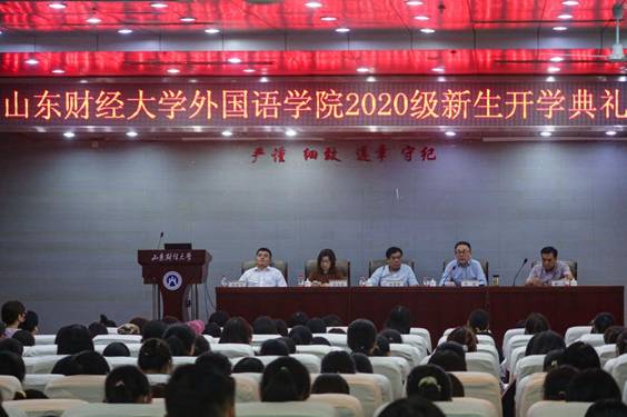 9月29日下午,台湾A片 2020级新生开学典礼在舜耕校区举行。学院党委书记甘建青、院长李毅、党委副书记陈海、副院长史汝波、副院长孙崇飞、外国文学研究所所长丁兆国教授、各系主任、学院辅导员和全体2020级本科新生参加开学典礼。开学典礼由党委副书记陈海主持。