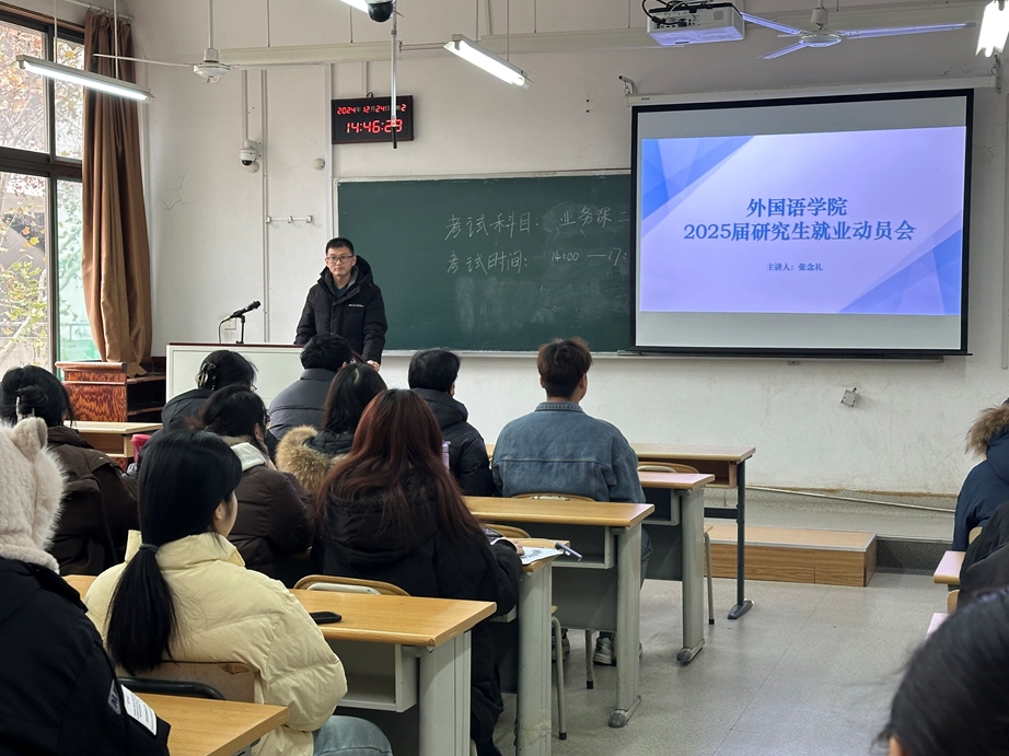 为助力2025届研究生毕业生精准把握就业机遇,不断完善学院研究生就业服务体系,推动研究生毕业生更加充分、更高质量地就业,12月24日,台湾A片 组织召开2025届研究生毕业生就业动员大会,2025届全体研究生毕业生、毕业班辅导员陈夏、学院分管就业工作的张念礼参加了此次会议。