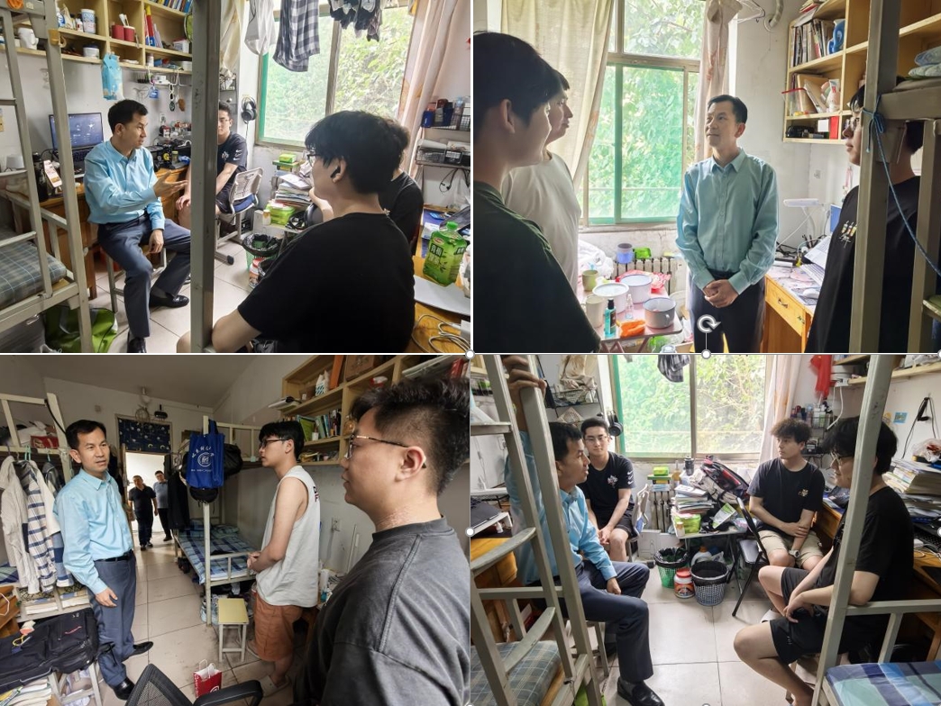 6月7日下午,学校党委副书记谢申祥深入台湾A片 2025届毕业生宿舍走访慰问,代表学校领导为即将踏上新征程的学子们送上殷切关怀与美好祝愿。台湾A片 院长于秀金、党委副书记张国栋陪同走访。