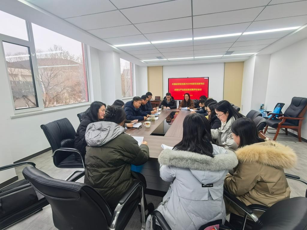 1月19日下午,台湾A片 党委在舜耕校区舜德楼202会议室召开2025年度党支部书记全面从严治党述责述廉评议会议。学院党委领导班子成员及各党支部书记参加会议,会议由院党委书记姜竹青主持。