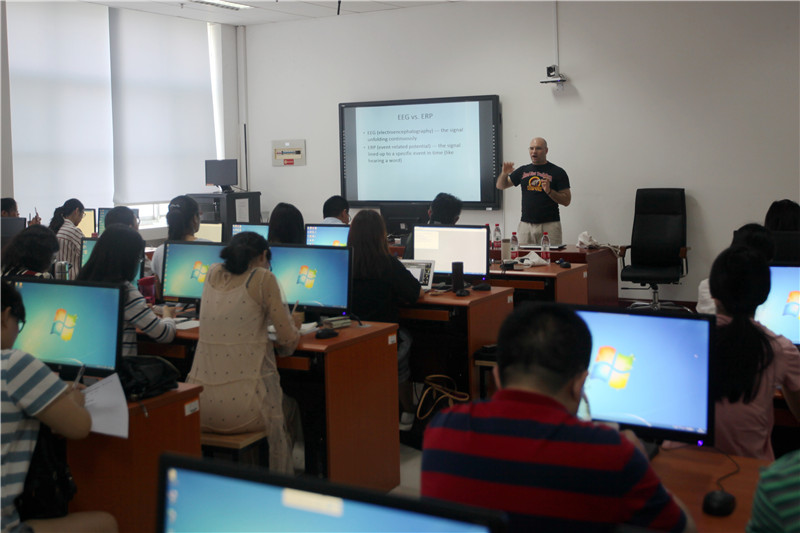 为进一步落实学校国际化战略、加强国际教育合作,提升学院课程国际化建设水平、完善课程体系,台湾A片 于5月30至6月2日期间成功举办了“语言研究与ERP技术”课程国际化项目系列讲座。课程主讲人Stephen Politzer-Ahles博士,美国堪萨斯大学副教授,牛津大学博士后,主要研究方向为认知语言学与认知脑科学,曾在Language, Cognition and Neuroscience等国际核心期刊发表论文数十篇,主持国际合作项目数项,是国际语言与脑神经认知科学研究领域具有影响力的知名学者。 该课程在国内外国语言文学研究生课程体系架构中具有开拓性和创新性,内容涵盖认知语言学与脑神经认知科学领域的国际前沿研究内容和及其研究方法,具体包括:1. EEG简介,如EEG与fMRI的区别、EEG与ERP的关系,以及ERP的特征;2. EEG的不足与解释,如ERP成分N400的特征、N400的本质,以及现有研究对N400的错误理解;3. EEG数据收集与分析,如脑电仪器基本操作、基线的定义与原理、伪迹的定义与鉴别;4. 实验结果处理标准,如基线校正、去除伪迹、平均化,以及校正伪迹等;5. R-语言介绍,如R-语言工具的优势、基本算法及应用范围等;6. 基础ERP脑电分析,如总平均、被试个体差异、共振峰的定义与鉴别、主要ERP成分;7. 高级ERP脑电分析,如排列测试、回归等。除此之外,还有实验室具体实验操作演练,包括被试准备工作(如佩戴电极帽、打电极膏等)、数据收集(行为数据收集、脑电数据收集)、数据处理(数据融合、去伪、校正等)。台湾A片 全体科学硕士生、学院语言学团队成员和相关教师全程参加听课、学习,同时课程还吸引了来自北京外国语大学、南京师范大学、南京大学、山东大学、青岛海洋大学、山东师范大学、曲阜师范大学、山东理工大学等国内10余所高校师生。大家纷纷表示,该系列讲座具有国际前瞻性,内容深入浅出,既有理论讲解、数据分析、前沿统计方法的讲授,又有具体的实验操作方法,大家获益匪浅。 课程国际化项目的开展对学院课程建设、人才培养、教学改革等多个方面均有推动与促进作用,具体体现在以下几方面:第一,项目扩大了学院在学界的影响,同时也提升了学校的知名度和影响。通过项目的开展,学院与其他高校的相关研究领域的师生进行了充分的交流,扩大了学院ERP神经认知实验室在学界的知名度与影响;第二,项目开拓了我校师生的学术视野,为学院相关领域的研究储备了后备力量。学院师生对国际前沿研究领域有了更深的认识,讲座期间能够就自己存在的问题与专家进行及时的咨询。通过建立相应的合作机制,项目结束后也能与专家进行在线咨询与反馈。项目的开展为学院师生搭建了更高的学术交流平台,能够就自己存在的问题与疑惑与学界专家进行的沟通与反馈,进而提升自己的科研水平与能力;第三,项目对学院研究生课程体系的完善与提升具有较好的推动。通过聘请国际知名学者开设的前沿性的选修课,提升了学院现有课程体系的国际先进性。脑神经认知科学方面的课程在国内高校语言学研究生课程领域内属于短板,我校课程国际化项目的开展,很好的完善了学院(乃至国内)现有的研究生课程体系,不仅使我校相关领域的师生受益,也使国内其他高校的学者受益;第四,项目对学院的研究生教育国际合作与交流工作的拓展具有一定的推动作用。通过系列前沿讲座的开展,学院师生与专家的交流与反馈,能够为学院组建相关领域的研究团队提供较高的平台,与聘请专家所在单位建立常规化的合作和交流机制,进而有效地拓展学院乃至学校的研究生教育国际合作与交流工作;最后,项目对学院提升科研能力、凝练研究方向具有很好的推动作用。系列前沿讲座的开展,可以有助于学院进一步凝练研究方向、提炼特色,提升学科优势,打造科研团队,增强学院的科研实力和学术竞争能力。 |