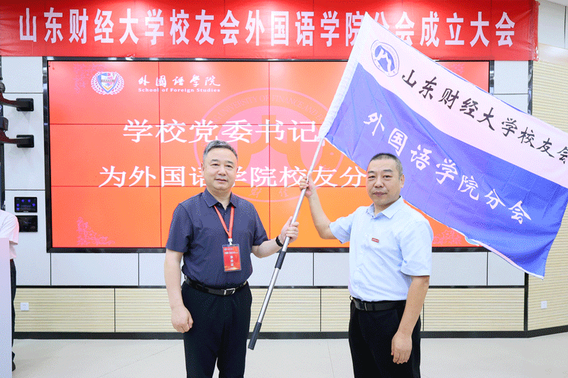 查玉喜为学院校友分会授旗,并为于秀金颁发会长聘书。